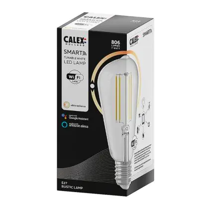 Beschrijving Calex Smart Tuya Wifi E27 Edison Filament 7W 806lm - 818-830 Afstembaar Wit | Dimbaar - Vervangt 60W