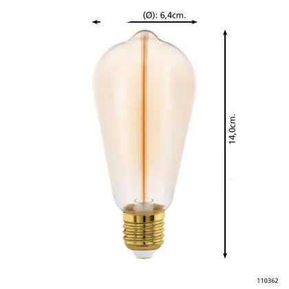 Naast de kleurtemperatuur speelt het uiterlijk van de lamp een belangrijke rol. Ga je voor mat glas of liever helder/gekleurd glas, waardoor je het LED filament (de oranje kooldraad) goed kunt zien? Heb je ook al nagedacht over de vorm en grootte? Deze E27 lamp heeft als vorm: Edison. Ten slotte heb je bij ons een zeer ruime keus aan dimbare E27 LED lampen. Hierbij heb je een LED dimmer nodig. Wil je extra informatie over E27 LED? Lees dan onze blog: Hoe vind ik de juiste E27 lamp?