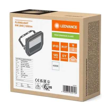 Beschrijving Ledvance LED Breedstraler Aluminium Wit 8W 1200lm 100D - 840 Koel Wit | IP66 - Symmetrisch