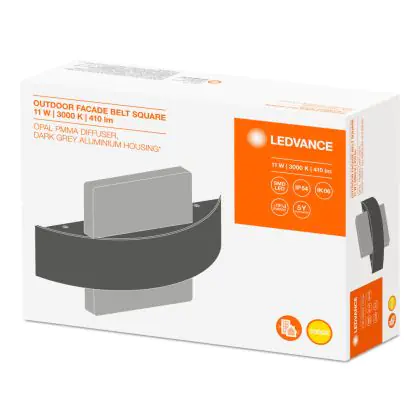 Deze Outdoor Facade serie van Ledvance is speciaal ontworpen als buitenverlichting. Voor bij de voordeur of in de tuin, maar ook als muurverlichting voor grotere panden. Deze Belt square heeft een verwelkomend effect en geeft een warme sfeer aan de omgeving. Ook zorgt buitenverlichting voor extra veiligheid. De kans op inbraak is namelijk kleiner met goede buitenverlichting.