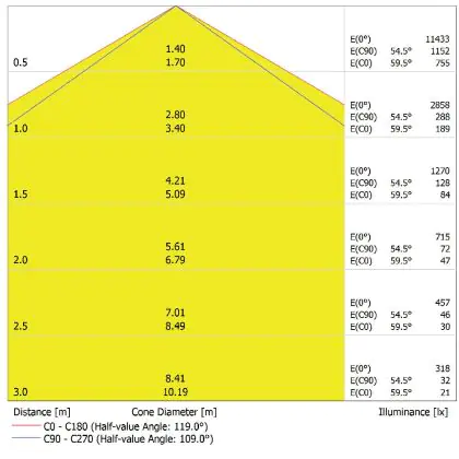 De lichtopbrengst (Lumen), geeft weer hoe krachtig het uitgestraalde licht is. Dit is belangrijk om te weten om de juiste sfeer te creëren. 0 tot 400 Lumen is bij uitstek geschikt voor accent- of sfeerverlichting. Een hoger aantal Lumen is, afhankelijk van de grootte van de ruimte, beter geschikt als ondersteunende- of basisverlichting. Heb je plafonds hoger dan 4 meter, dan is een lichtopbrengst van minimaal 8000lm aan te raden indien heldere verliching gewenst is (vb. in werkomgevingen).