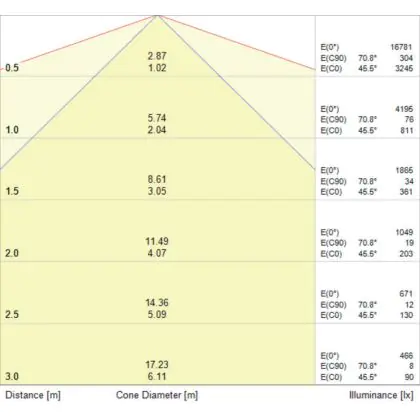Deze Noxion NX-Line module schijnt een licht uit met een brede stralingshoek, of gradenbundel van 90° (WD90). Daarnaast heeft het een lichtopbrengst van 11200 Lumen waardoor het goed gebruikt kan worden in omgevingen met hoge plafonds.