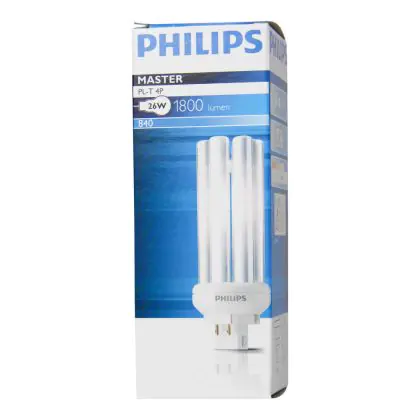 Het is bij de Philips PL-T 4P niet mogelijk om een ander wattage lamp in uw voorschakelapparaat gebruiken dan waarvoor deze bedoeld is. Door de GX24q-3 lampvoet, is de Philips PL-T 26W 830 4P (MASTER) eenvoudig te integreren in armaturen. Let er hierbij wel op het wattage. U kunt namelijk niet wisselen van wattage, doordat de lengte van de lamp zal veranderen en tevens heeft u een ander voorschakelapparaat nodig.