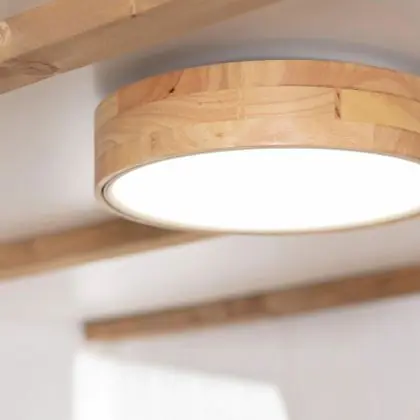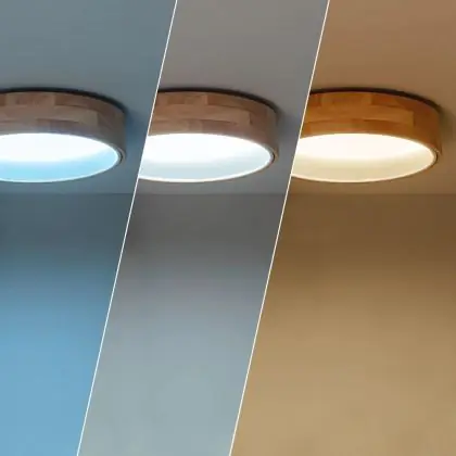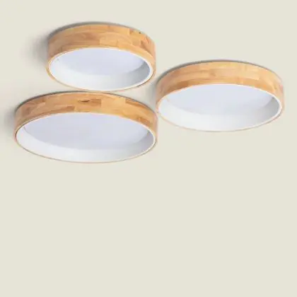 Beschrijving Plafondlamp Rond Hout Metaal Wit 15W 1000lm - 830-840-860 CCT